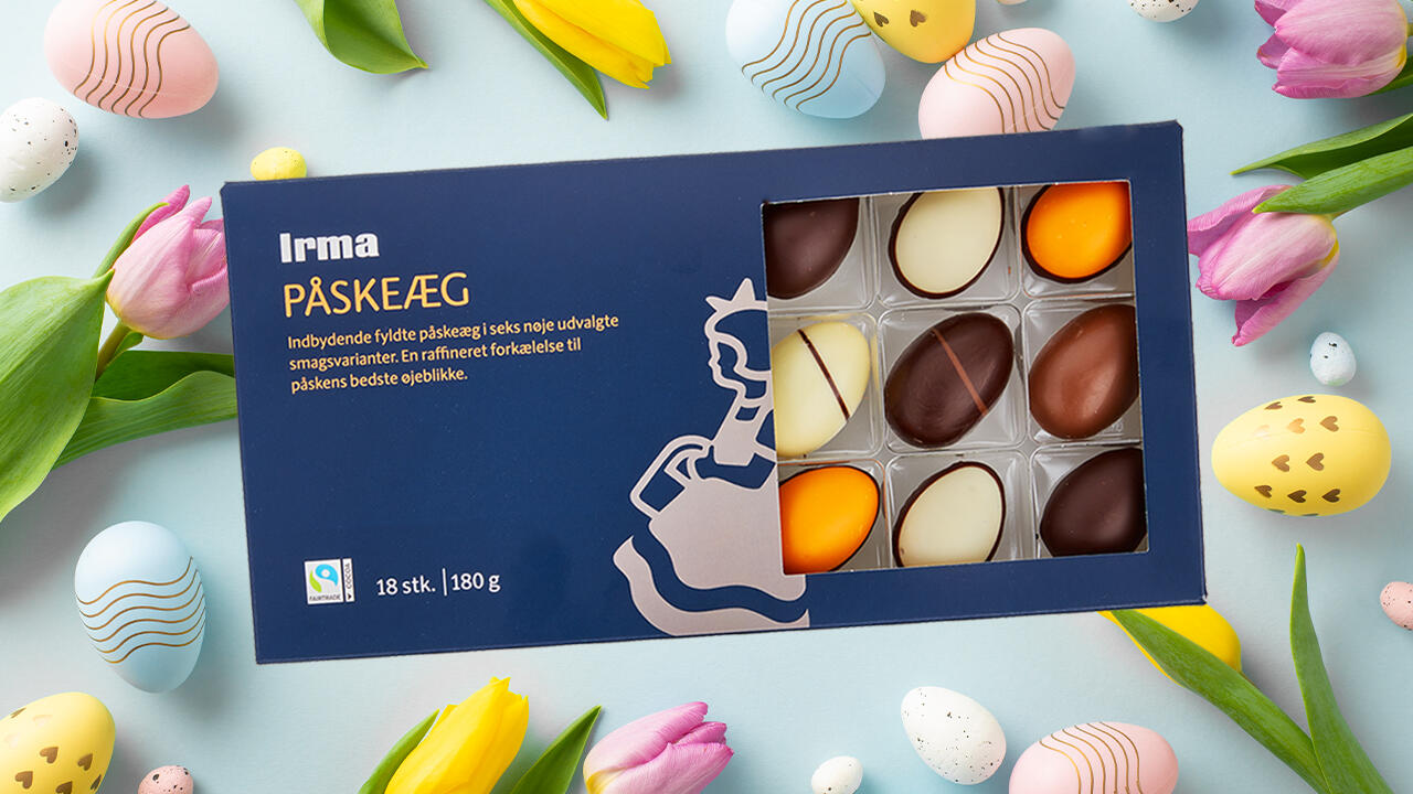 Påskeæggene fra Irma er fremstillet af lækker kvalitetschokolade. Hver pakke indeholder 18 påskeæg, og vi trækker 5 vindere, der alle får direkte besked. De 5 vindere modtager hver 3 æsker med 18 lækre påskeæg fra Irma. De 3 æsker har en samlet værdi af cirka 500 kroner.